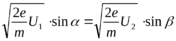 Равенство составляющих скоростей y1 и у2 можно записать в виде 1 sin = 2 sin. Если электрон влетает в область потенциала U1 c нулевой начальной скоростью, то, учитывая, что скорость определяется величиной электрического поля, можно записать: