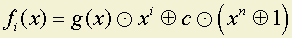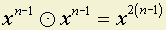 если полученный многочлен имеет степень меньше чем (n – 1), то он и принимается за результат умножения, если же степень больше чем (n – 1), то он делится на двучлен c записью в качестве результата умножения остатка от деления.