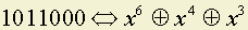 умножение осуществляется по обычным правилам с приведением подобных членов путем сложения по модулю два;