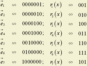 Получили остаток, отличный от нуля. По нему мы должны определить, в каком разряде имеет место ошибка. Для этого необходимо определить, какой остаток ri(x) даст единичная ошибка в i-том разряде.