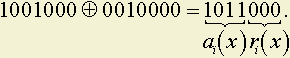 Степень многочлена g(x) – m, а степень остатка – (m – 1). Поэтому сложение эквивалентно приписыванию остатка r(x) к ai(x), так как m разрядов в