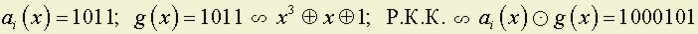 Пусть ai(x) = 1001 = x3 Е 1; g(x) = 1101 = x3 Е x2 Е 1.