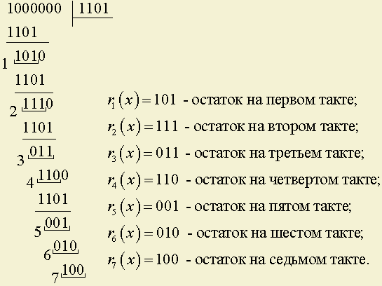Остаток на седьмом такте деления r7(x) = 100.