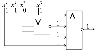 3. Спроектируем схему распознавания остатка. Минимальные затраты оборудования (считаются по числу входов-выходов) будут иметь место при инверсии «1» в «0» и установки схемы «исключающего или», когда при входе трех нулей на выходе берется инверсный выход, дающий «1», т.е.