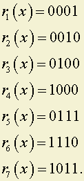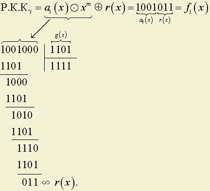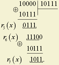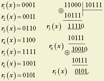 Имеем: ai(x) = x3 Е 1 = 1001; g(x) = x3 Е x2 Е 1 = 1101.
