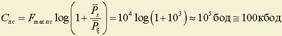 т.е. количество информации, которое может быть пропущено по данному каналу, примерно равно объему канала, если мощность сигнала намного больше мощности помехи.