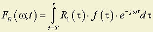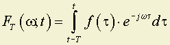 то есть мгновенный спектр определен как спектр процесса длительностью T, непосредственно предшествующего данному моменту t, то есть мы имеем дело со скользящим интегрированием: интервал интегрирования имеет постоянную длину, но перемещается по оси времени.