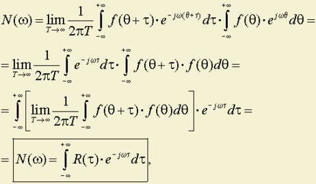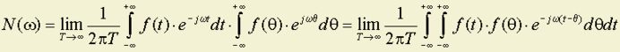 К случайной функции непосредственно применить преобразование Фурье нельзя, поскольку она не определени точно. Однако для любой из реализаций ƒν(t) конечной длительности T можно найти преобразование Фурье Fν(jω), то есть