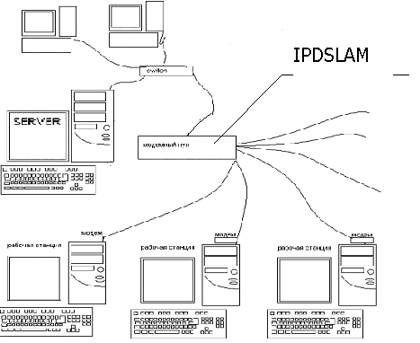 ADSL соединение позволяет использовать уже проложенную городскую телефонную линию. (Используем стандарт ADSL,т.к. расстояние между котельными 1-8км.)
