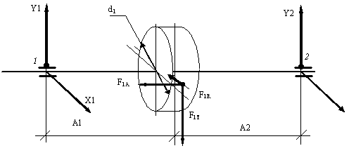 Расчетные схемы валов. Расчет усилий в зацеплении, реакций в опорах и проверка долговечности подшипников