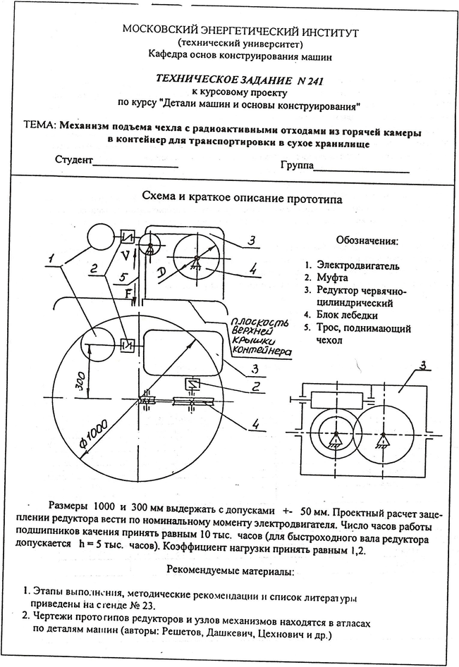 Тема: Механизм подъема чехла с радиоактивными отходами из горячей камеры в контейнер для транспортировки в сухое хранилище