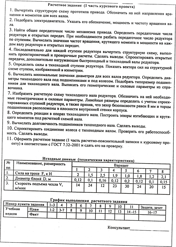 Раздел I.Подбор двигателя и передаточных чисел