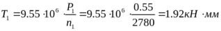 Принимаем двигатель мощностью 0.55кВт [8]*