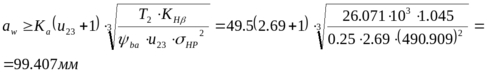 Таблица 3.1[стр.36, табл.3.5стр39[5],табл.2.10[8]] Расчет межосевого расстояния