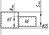 | ведомый вал | подшипники качения — | Отверстие (внутреннее кольцо подшипника) ∅25L0 ES=0; EI= -10; 24.990 ... 25.000 Вал ∅26k6 es=+15; ei=+2; 25.002 ... 25.015 | ||