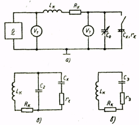 тельного контура измерителя добротности, где Сх характеризует емкость исследуемого конденсатора, rх —эквивалентное сопротивление