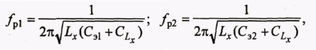 Пусть соотношение частот ƒp1 = K •ƒp2, где коэффициент К — вещественное число. Тогда совместное решение уравнений (12.22) позволяет вычислить ранее неизвестные значения параметров Lx и CLx по формулам: