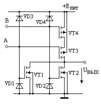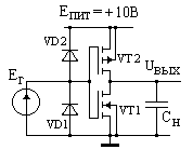| Дано: VT1,VT2=Si, b1=5мА/В2, b2=5мА/В2 U01=2В, U02=3В. СН=200Ф. Опр: UВЫХ, IVT1 ,IVT2 = f(t) |