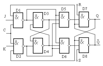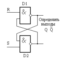 | Дано: D1, D2 =К561ЛА7. Определить выходы Q и Q-, Составить таблицу состояний. | ||
