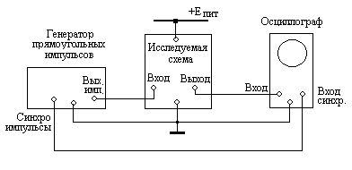 В процессе измерения длительности переходных процессов желательно использовать внешнюю синхронизацию осциллографа. Это обеспечивает независимость уровня синхронизации от амплитуды импульсов сигнала EГ и повышает точность отсчета длительности исследуемого процесса.