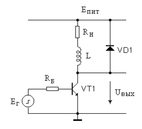Нагрузкой ключа является активное сопротивление RН и индуктивность L. Назначение диода VD1 - предохранение транзистора от повышенных напряжений, и об этом будет сказано ниже. Примем, что активное сопротивление катушки индуктивности (rL) мало, так что RН + rL RН.