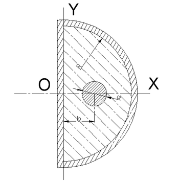 В полукруглой трубе, заполненной несовершенной изоляцией с электрической проводимостью , проложена цилиндрическая жила. Между жилой и трубой приложено напряжение U0.