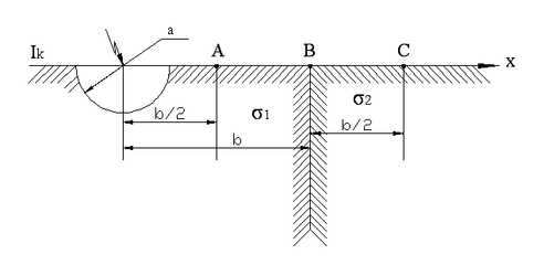 3. Найти точки пересечения границы опасной зоны с осью Х, полагая, что допустимое шаговое напряжение Uш=40 В, а длина шага  0,7 м.