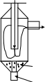 Газовый поток вводится по касательной к внутренней поверхности корпуса (спец. профилированной) и совершает вращательно-поступательное движение вдоль корпуса к бункеру. За счет центробежных сил частицы пыли образуют слой на поверхности корпуса, а очищенный воздух поворачивает на 180 о и идет наверх.