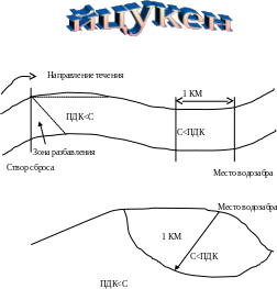 Для рек, зона начального разбавления, значительно короче, чем для озер.
