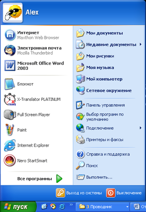 В отличие от Windows 2000 меню «Пуск» может быть представлено в 2-х видах: расширенном и классическом.