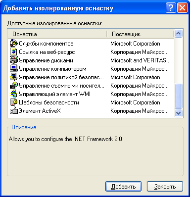 Предоставляет функции администрирования системы. Содержит в своем составе ряд изолированных оснасток и оснасток расширения