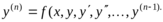 Обыкновенное дифференциальное уравнение n-го порядка, разрешенное относительно старшей производной, имеет вид