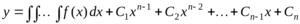 Это уравнение интегрируется непосредственно n раз. При каждом интегрировании порядок уравнения понижается на единицу, и появляется произвольная постоянная. В результате общее решение