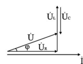 В) Для варианта XL > XC угол φ > 0, UL > UC. Ток отстает от напряжения на угол φ. Цепь имеет активно-индуктивный характер.