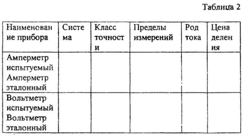 Занести в табл.2 технические данные приборов (тип, систему, род тока, предел измерения, класс точности, цену деления).