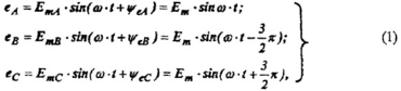 где EmA,ψeA;EmB,ψeB;EmC,ψeC - параметры-амплитуды и начальные фазы соответствующих э.д.с. В выражениях (1) принято ψeA = 0.