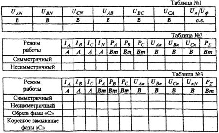 работы трехпроводной трехфазной цепи. Действия осуществлять в