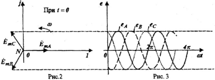 Осциллограммы э.д.с. еА,еB,еC, соответствующие выражениям (1) и векторной диаграмме рис. 2, приведены на рис. 3.