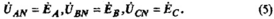 Комплексы действующих значений напряжений между зажимами А,B,С и нейтралью N: