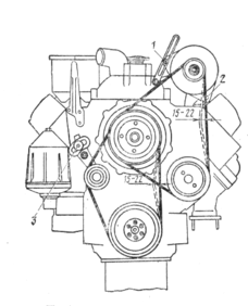 Рис. 9 Схема натяжения приводных ремней двигателя КамАз-740: