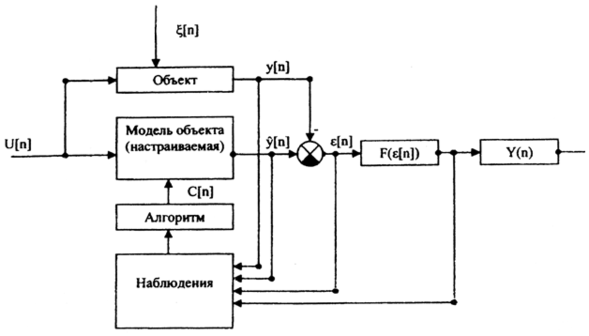 Структурная схема идентификации представлена ниже. Алгоритм вырабатывает коэффициенты модели.