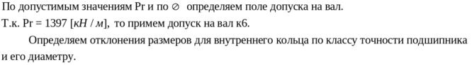 По конструкции узла определяем, что вращается вал с внутренним кольцом. Внешнее кольцо установлено неподвижно в корпусе. Между валом и внутренним кольцом возникает циркуляционное нагружение. Циркуляционно-нагруженное кольцо должно иметь неподвижное соединение с сопрягаемой деталью (посадка с натягом). Между корпусом и наружным кольцом возникает местное нагружение (посадка с зазором).
