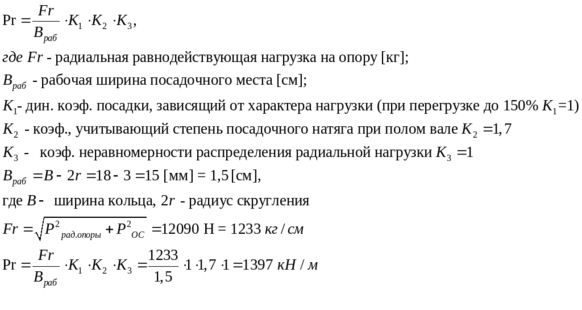 Рассчитаем интенсивность радиальной нагрузки циркуляционно-нагруженного кольца по формуле: