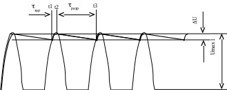 Величина пульсаций U – определяется как разность между верхним и нижним пиковыми значениями.