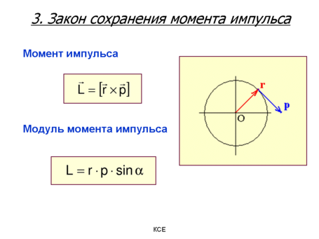 Момент импульса – характеризует количество вращательного движения. Величина, зависит от того сколько массы вращается, как она распределена относительно оси вращения и с какой скоростью происходит вращение.