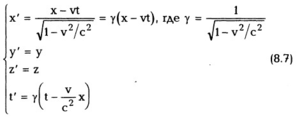 (8.7) x,y,z,t через x',y',z',t' (обратные