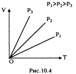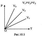 зависимость Р от Т при фиксированных значениях объема V (рис. 10.5).