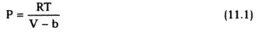 Начнем с того, что учтем в уравнении состояния (которое мы будем писать для одного моля газа) ограниченную сжимаемость газа. Для этого надо в уравнении идеального газа Р = RT/V