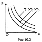 изображающих зависимость Р от V при различных значениях температуры Т. Такие кривые называются изотермами (см. рис. 10.3).