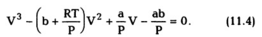 При заданных значениях Р и Т - это уравнение третьей степени относительно неизвестного V.